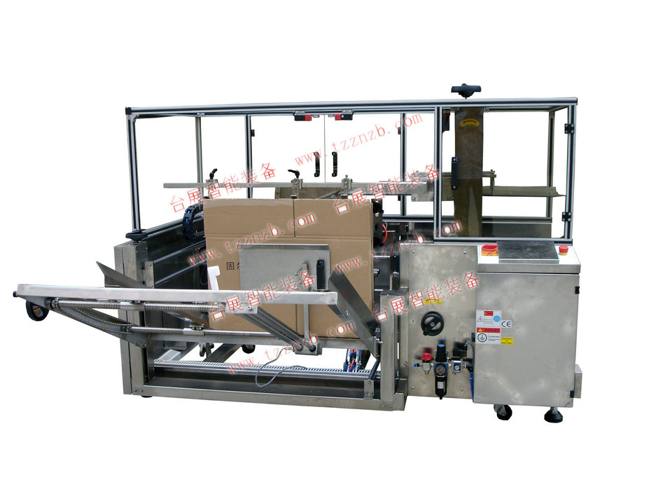 自動完成開箱、成形、下底按順序折疊并實時完成下部分膠帶粘貼,將疊成紙板的箱板自動打開,箱子底部按一定程序折合,并用膠帶密封后輸送給裝箱機(jī)的專用設(shè)備。